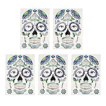 Halloween Skeleton Face Tattoo - 5 Sheets of Skin-Friendly Temporary Skull Face Tattoos for DIY Use