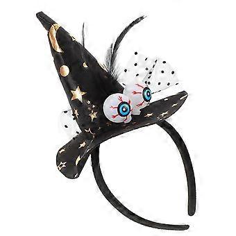 Halloween Witch Hat Headband with Lace and Eyeball Decoration for Party