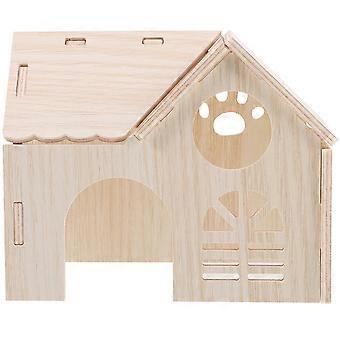Hamster Decorative House 2Pcs Indoor Use Reduces Negative Emotions For Small Pets Beige Wooden Structure