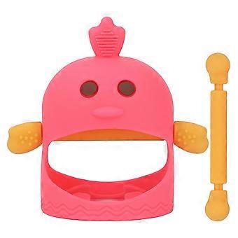 Hand Pacifier Silicone Cute Chick Shape Baby Teether Soothing Pacifier with 2 Teether Stems for Daytime and Nighttime Watermelon Red