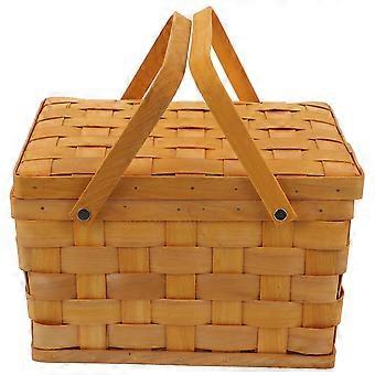 Hand-Woven Baskets Wooden Weaving Picnic Basket Fresh and Simple Design Portable Sundries Basket Car Use 1Pc