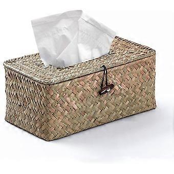 Handmade Natural Bamboo Rectangular Tissue Box, Straw Woven Rattan Tissue Dispenser For Kitchen, Bathroom And Office, 17 * 13 * 8cm (a)