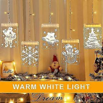 Hanging 3d Christmas Tree Lights, 5 In 1 Xmas Decoration Light Curtain Xmas Decoration Light Window With Hooks For For Indoor Outdoor Party Holidays