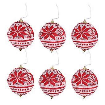 Hanging Ornament Knit Wool Ball for Christmas Tree 18Pcs Red Decor Set