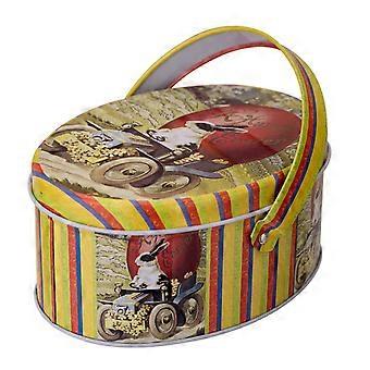 Happy Easter Treat Box with Handle Flat Egg Shape Candy Box Cartoon Bunny Pattern Portable Iron Art Biscuit Cookie Box Kids Gift Box Easter Party Favo