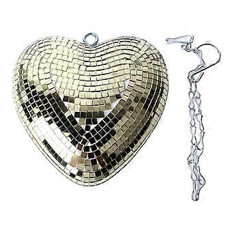 Heart Shaped Mirror Ball Shiny Decorative Reflective Mirror Ball Ornament with Hook Chain for Party KTV Bar Champagne Gold