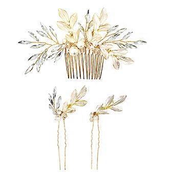 Here's a refined and engaging product description for your **3pcs Leaf Rhinestone Hairpin Set with Pearls**: ### 🌿 Elegant Leaf Rhinestone