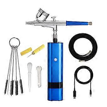 HHC Newly Designed High Pressure Cordless Airbrush Kit Auto Start Stop Klein Blue Cup Replaceable Spray Gun For Painting Makeup