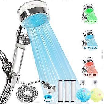 High Pressure LED Shower Head with Handheld Hydro Jet Hose Holder & 3 Filters - Temperature-Controlled