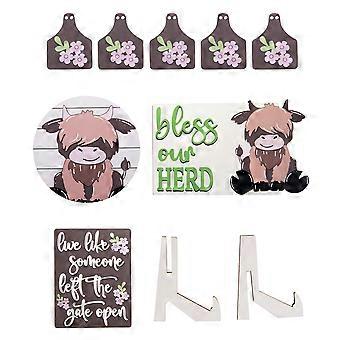 Highland cattle yak style layered tray decoration wooden crafts home desktop ornaments set