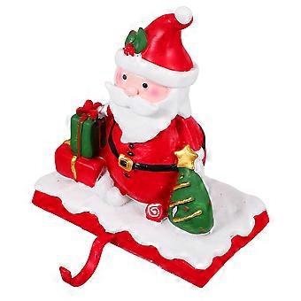 Christmas Stocking Holder for Hanging with Santa Claus Red Resin