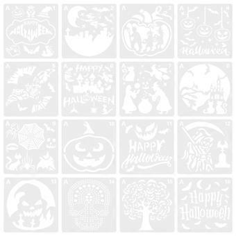 Hollowed Halloween Stencil Decorative Printing Stencils 16 Sheets Square White Design DIY Craft Decoration