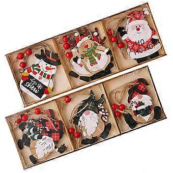 Home Hanging Ornaments Xmas Themed Pendant Christmas Party Rectangular Box Wood Rope 2 Sets