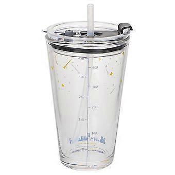 Home Use Measuring Glass Cup with Straw 2Pcs 400ml Transparent Milk Cups