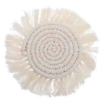 Home Woven Coaster Round Design Mug Mat For Kitchen Table Heat Insulation 18x18cm White Color 1Pack