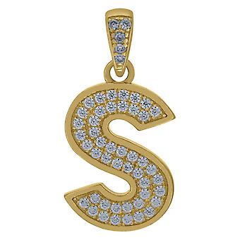 10k Yellow Gold Mens Women Cubic Zirconia CZ Letter Name Personalized Monogram Initial S Charm Pendant 28.5x14.00mm Wide JewelryWeb
