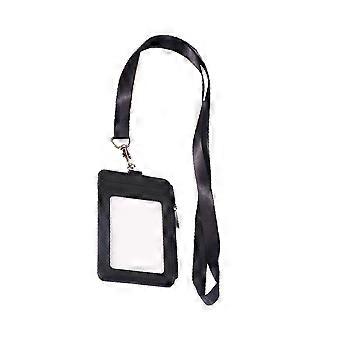 Id Card Protective Cover Id Badge Holder Rectangle Simple Design For Schooling Students Black 15.5*5.5cm 1Set