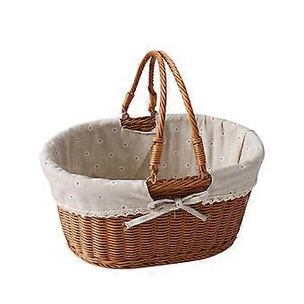 Imitation Rattan Picnic Basket Oval Small Poly Wicker Hand Woven Shopping Gift Basket with Folding Handles for Weddings