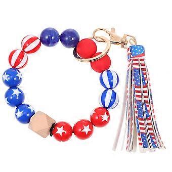 Independence Day Wooden Beaded Bracelet Key Chain Key Ring Decor 1 Set