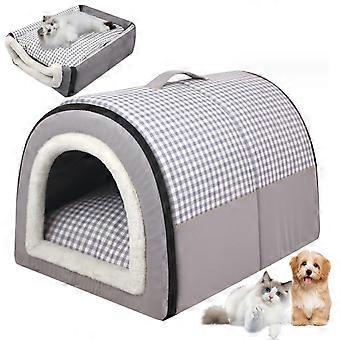 Indoor Dog House 2 in 1 Foldable Cat Beds Removable Cushion Non-Slip Waterproof Warm Washable Dog Bed and Cat Cave