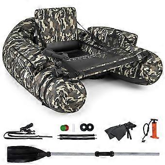 Inflatable dinghy with fish ruler & rod holder & paddle fishing boat camouflage
