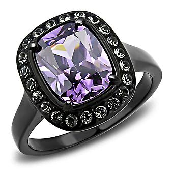 IP Black(Ion Plating) Stainless Steel Ring with AAA Grade CZ in Amethyst for Women Style TK3512