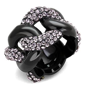 IP Black(Ion Plating) Stainless Steel Ring with Top Grade Crystal in Light Amethyst for Women Style TK1787