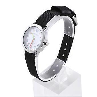 It looks like you're describing a product listing for a **Cartoon Sports Watch**—a minimalist black wristwatch with a nylon strap, designed for boys,