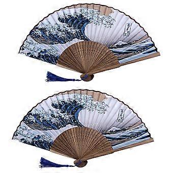 Japanese Folding Handheld Fan Ideal For Tea Party And Summer Use Blue 2Pcs 38x21cm
