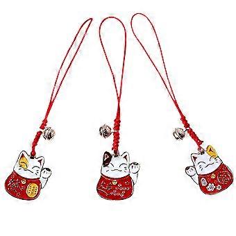 Japanese Fortune Cat Pendant Red Cat Shape Bag Charm for Phone Car Rearview Mirror Ornament Decoration present Giving 3Pack