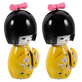 Japanese Style Doll with Kimono for Home Decor Made of Wood Multi Color 2 Pieces