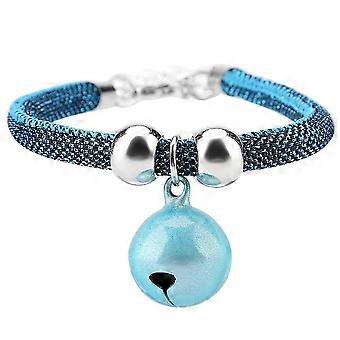 Japanese Style Pets Necklace PU Accessory Supply Cat Bell Collar with Extension Chain(Blue)