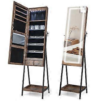 Smyckesskåp med hylla & helspegel & 3 färgade LED-lampor & 2 lådor bruna