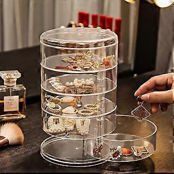 Jewellery Organiser Box 4-Layer Clear Acrylic Rotating 360-Degree Spin Holder for Necklaces Bracelets Rings Earrings