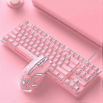 Keyboard And Mouse Set Wired Desktop Computer Game Gaming 87-key Girl Cute Pink Mute Office Notebook Keyboard