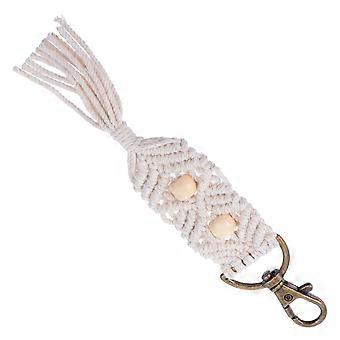 Keychain Hanging Pendant Simple Design Bag Charm Cotton Rope White 17x3x0.3cm 1Set