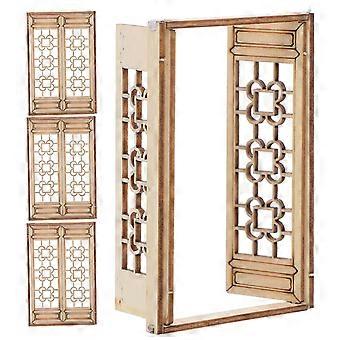 Khaki Wooden Miniature Windows for Decor with Realistic Design and Engraved Patterns 4 Pcs