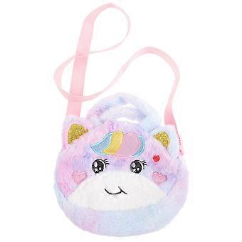 Kids Crossbody Purse Unicorn Shape Outdoor Use Purple Plush Material for Storing Daily Necessities 1Set