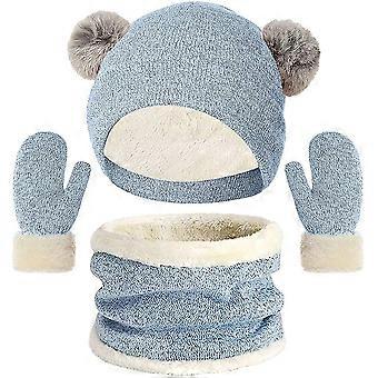 Kids Winter Beanie Scarf And Gloves 3 In 1 Warm Beanie Set Pompom Hats With Thick Fleece L