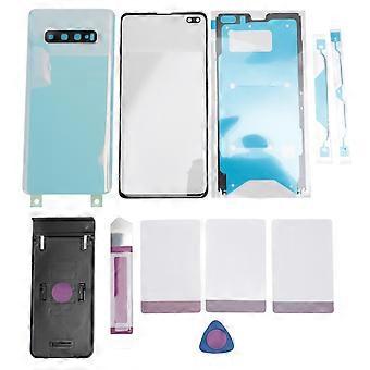 Kit de réparation pour Galaxy S10+Plus, coque arrière en verre, lentille extérieure avant, objectif d'appareil photo préinstallé, blanc