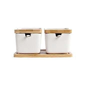 Kitchen Condiment Jars Ceramic Storage Container with and Spoons for Family Use 2Set