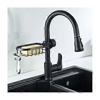Kitchen Faucet Sponge Holder Sink Organizer Over Faucet Hanging Faucet Drain Rack for Sink Organization (Black-Normal)18*10.8cm