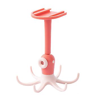 Kitchen Wall Mounted Hook Traceless 360 Degree Punch Free with 6 Hook Kitchen Rotatable Hook for Storage Pink