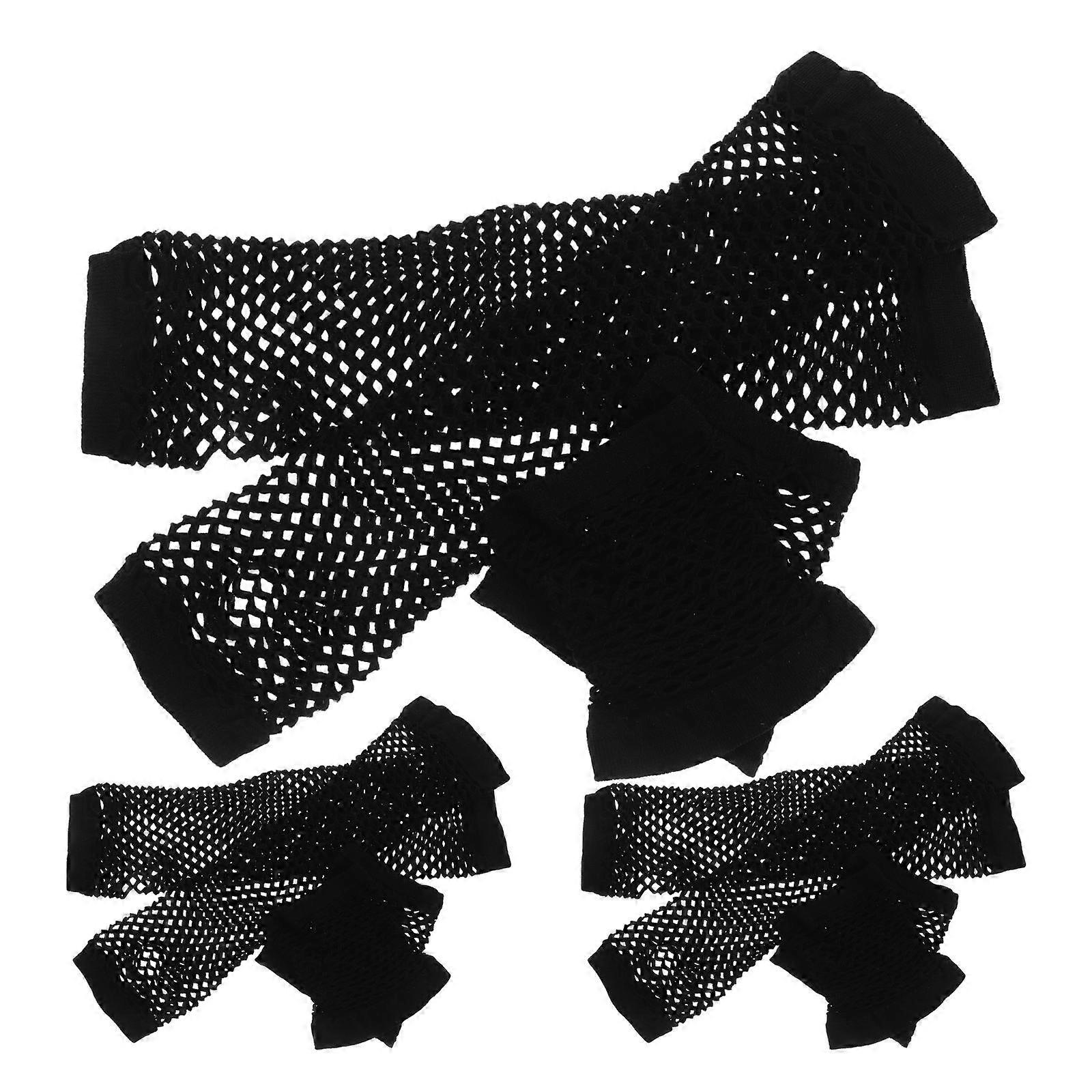 Costume Gloves Hollowed Mesh For Cosplay And Masquerades Elegant Black Fishnet Design 6 Pairs Size 7.80X7.50X0.40cm