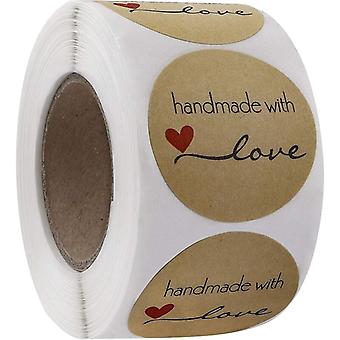 Kraft Paper Stickers "Handmade with Love" 2.5cm Round Adhesive Label Roll Kraft Handmade with Love Sticker Label for DIY Baking Scrapbooking Gift Deco