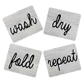 Laundry Room Decorative Signs with Unique Hanging Design for Home Decor in Light Grey 4 Pieces