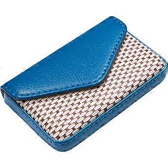 Leather Business Card Holder Wallet Credit Card with Magnetic Buckle Black (Blue)