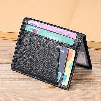 Leather card case Wallet with note compartment and ID pocket Black