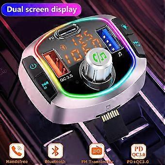 Led Backlit Bluetooth5.0 Car Charger Fm Transmitter Tfu Disk Mp3 Player Handsfree Car Kit Dual Usb Qc 3.0+Pd Type C Fast Charge