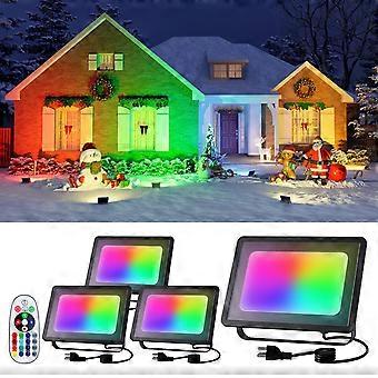 4 Pack 50W Christmas LED Flood Lights Waterproof RGB 16Color with Remote for Outdoor Holiday Décor